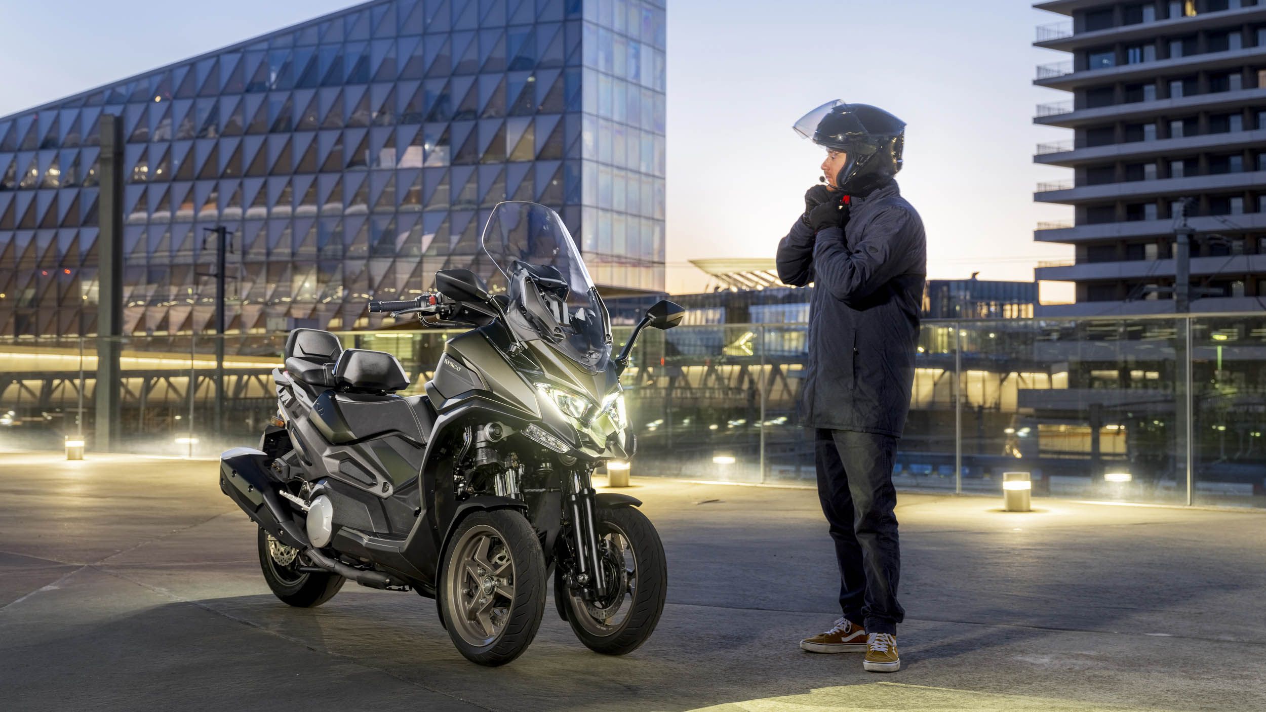 Pour son tout premier scooter à 3 roues, la marque taïwanaise, Kymco, frappe fort avec un maxi-scooter de 550 cm³. Le CV3 pour Concept Vehicule est le fruit de nombreuses années de développement afin de proposer un scooter aussi puissant que confortable.